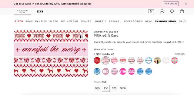 - Making the purchase flow easy so shoppers can choose an amount, add a message, and send the gift in a few clicks.