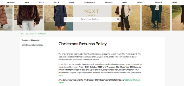 - Updating your policy page with a “Christmas returns” section that spells out dates, conditions, and how to start a return.