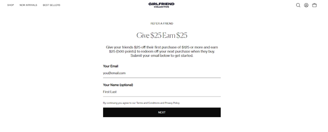 Girlfriend Collective, the sustainable activewear brand, leans into values-based referrals. Both referrer and friend get rewarded, and the brand's environmental mission makes sharing feel aligned with identity, not just incentives.