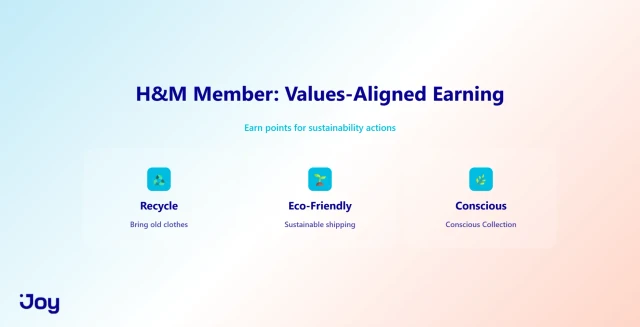 Values-based earning (H&M) | Mission-driven brands, eco-conscious products | Clear brand values and trackable actions | Non-purchase earning actions + review integrations |