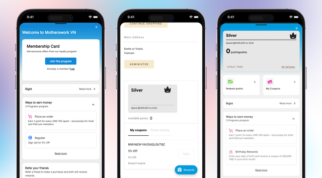 Joy’s Shopify-native design made loyalty management intuitive for operators and delightful for customers. Every element was crafted for usability, flexibility, and polish — empowering Motherswork’s team to create on-brand loyalty experiences without developer help.