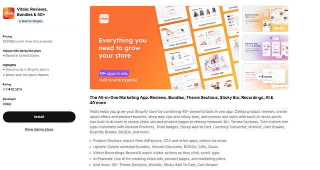 Vitals | From $29/month | Maximize cart size and conversion with bundles from high-intent BFCM traffic |