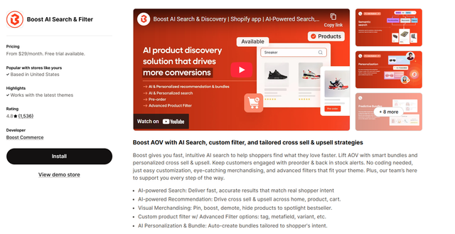 Boost AI Search & Filter | From $29/month | Helps customers find products fast during BFCM flash sales with personalized filters. |