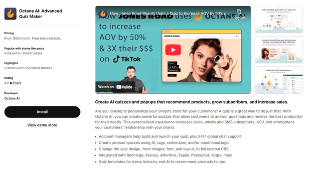 Octane A.I | From $50/month | Collects data through quizzes to personalize BFCM product recommendations |