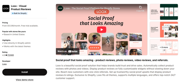 Loox turns that proof into power. It displays authentic customer photos and reviews at key points in the buying journey — on product pages, during checkout, and even after purchase. The core idea is to focus on visual reviews. Loox helps you sell through credibility, not claims.